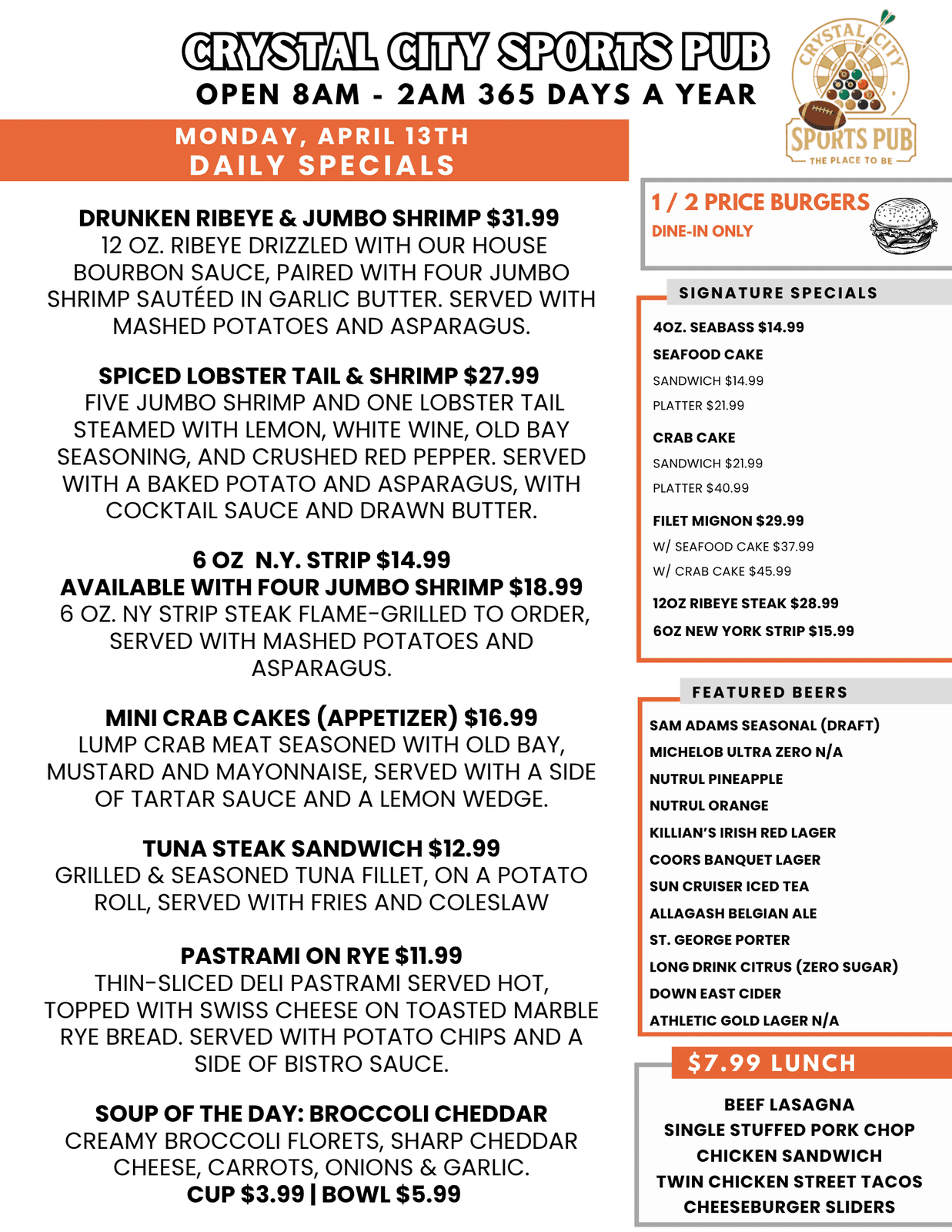 $7.99 LUNCH MENU